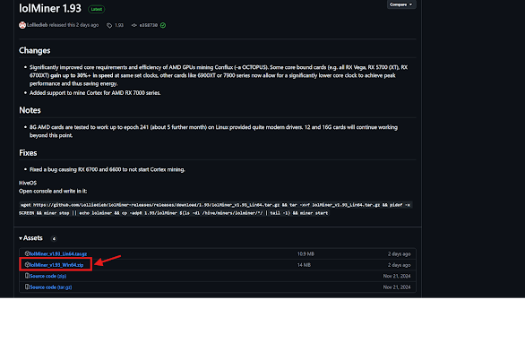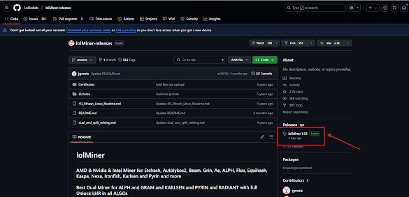 1.打开GitHub,https://github.com/Lolliedieb/lolMiner-releases ,点击最新版本下载。